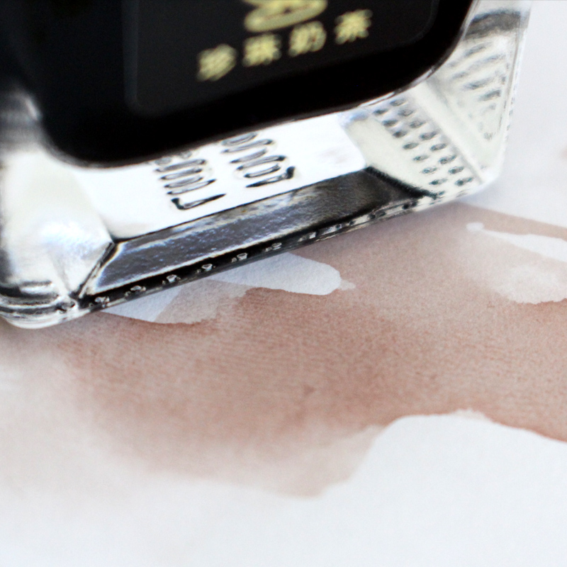文字書きでは深紅の色味、水でにじませるとふんわりと灰ががかった色味と明るい赤が両方現れることで人気の長崎美景インク「五島椿ホワイトレッド」。