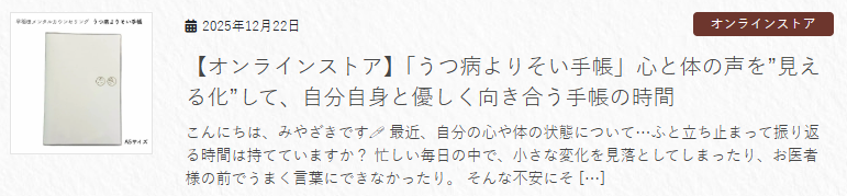 ≫12/22更新 うつ病よりそい手帳 入荷しました