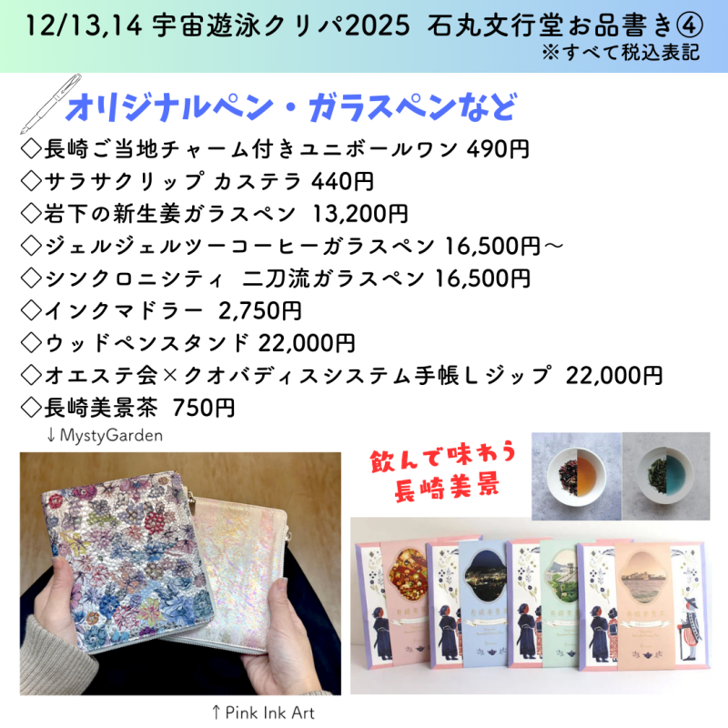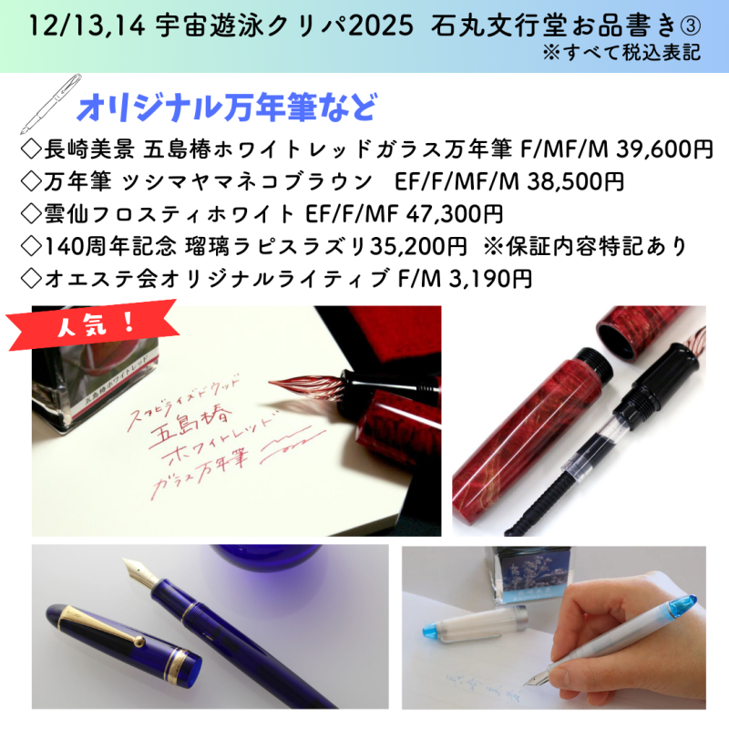 わたしたちのブースでは、オリジナル万年筆やインク、長崎をモチーフにしたご当地文房具、そしてオエステ会限定アイテムなどをお持ちいたします。