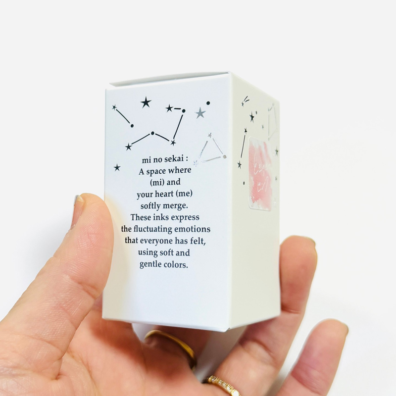 インクパッケージにすっぽり入るかわいらしいサイズ感と、(み)のせかいをぎゅっと詰め込んだデザイン。