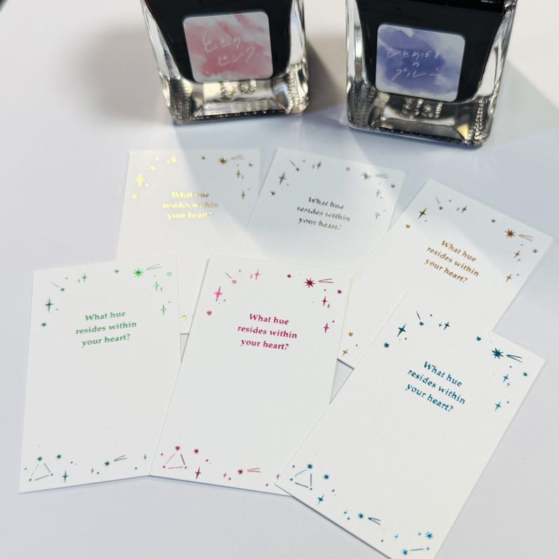 箔押しの色に合わせたインクで書いたり、色の組み合わせを楽しんだり…