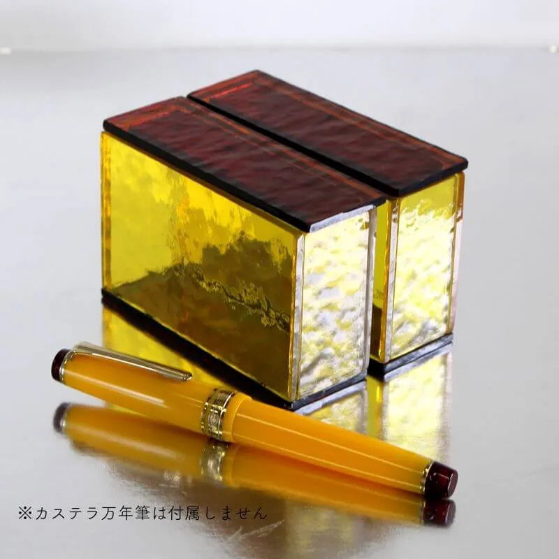 これは、国宝である大浦天主堂、頭ケ島天主堂の修復工事なども手掛けたガラス工房「瑠璃庵」さんとコラボした、涼しげなガラス製のペンスタンド兼オブジェです。