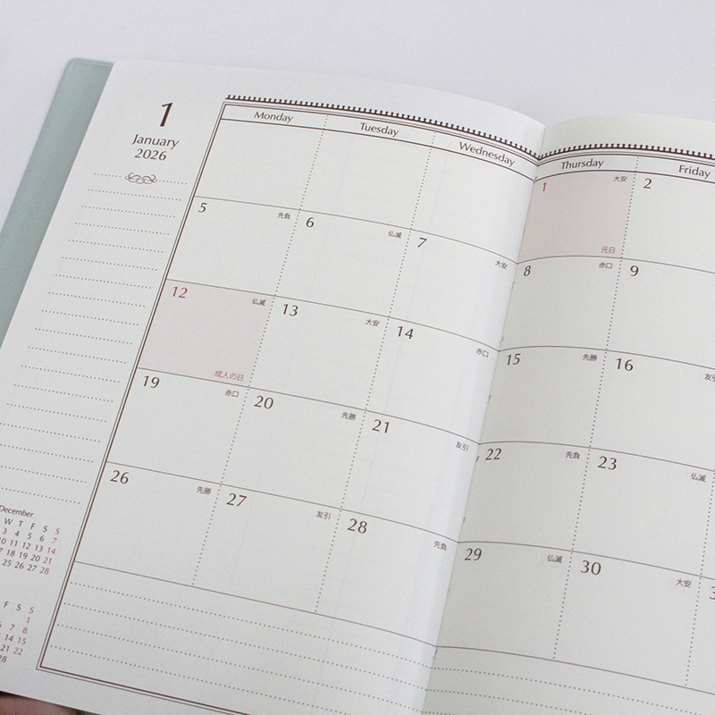 何かを始めたい、自分を変えたいと思った時が、一番の吉日。 10月・12月・1月始まりの手帳なら、買ったその日の、次のページからすぐに使い始めることができます。 この「思い立った時の熱量」を逃さないのが、手帳ライフを長続きさせるコツなんです。