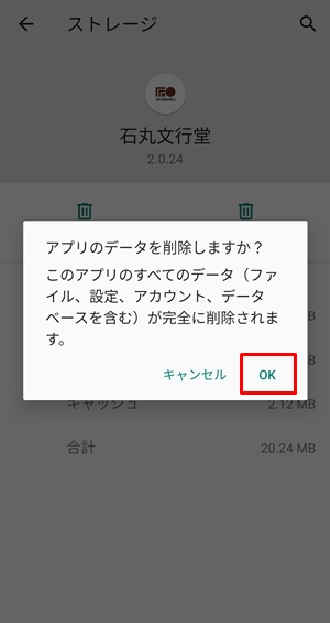 ホーム画面の石丸文行堂アプリを長押しし、アプリ情報をタップします。