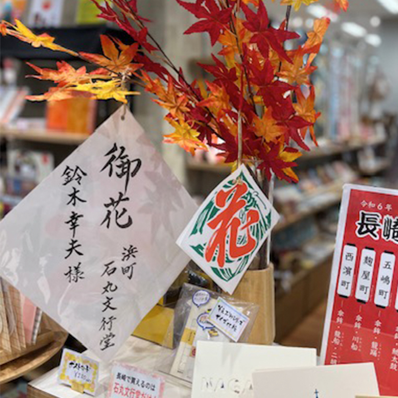 長崎の秋を彩る大祭「長崎くんち」。その中で欠かせないのが、出演町や関係者に贈られる「御花」です。石丸文行堂では、長崎くんちに欠かせない「御花」の作成を承っており、毎年たくさんのご依頼やご相談をいただいております。