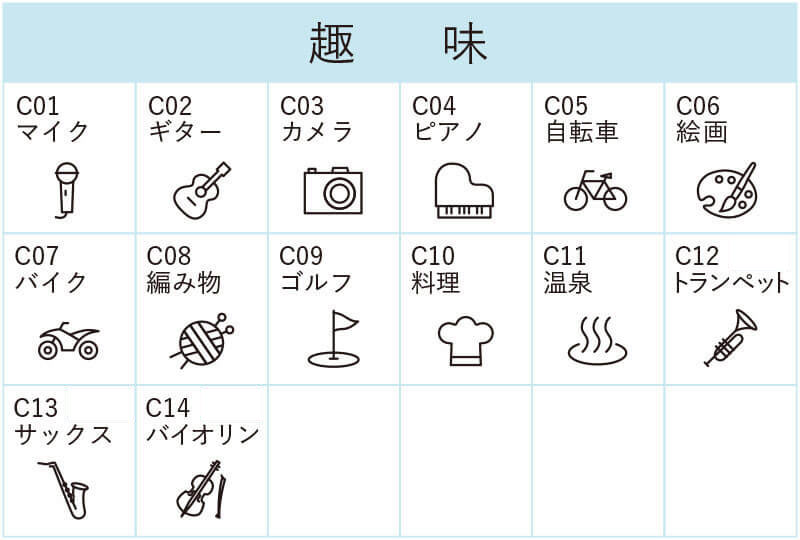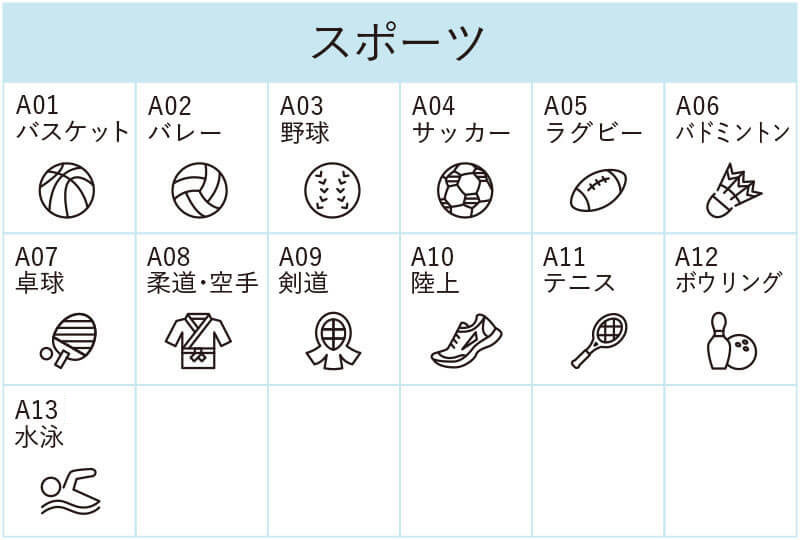 スポーツや楽器などの選べるマークは約130種類!部活動やサークル、趣味などに合わせて選ぶ楽しみもありますよ♪