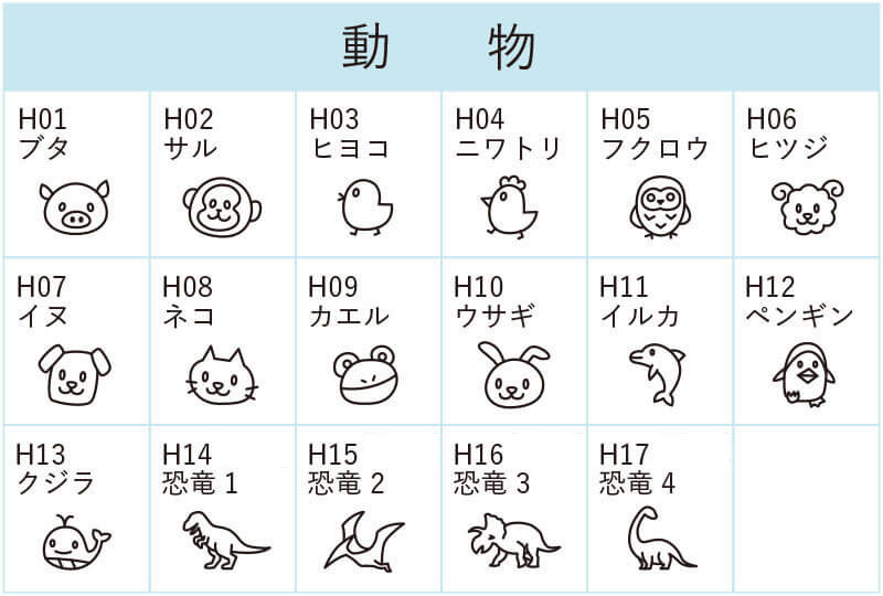 石丸文行堂オリジナルのマーク約130種類のなかから選べます。お友達とおそろいにしたり、部活やサークル仲間との記念にしたり、ご自身用としても人気です。