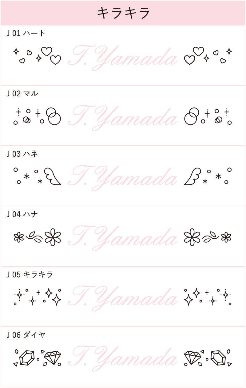 △お名前の両サイドに配置するタイプの「キラキラマーク」は華やか!※こちらのサンプルフォントはイメージです